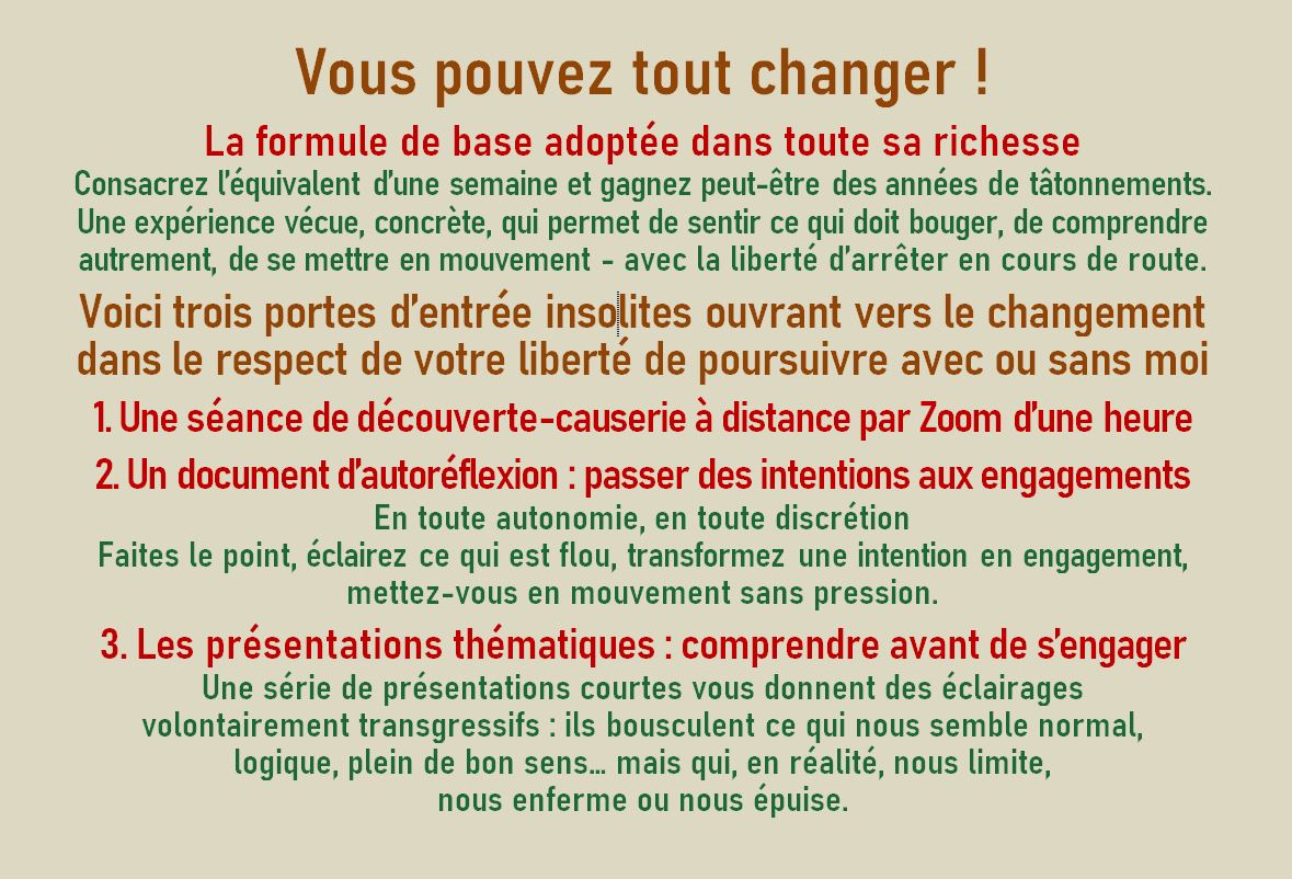 Trois voies d’accès au changement, avec ou sans moi !